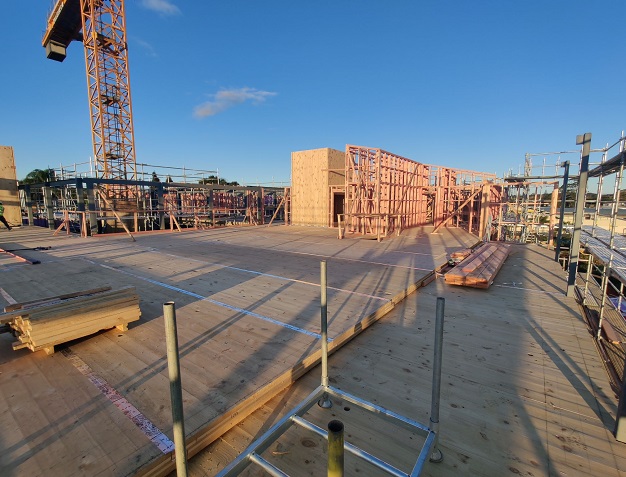 The project consists of a two-storey structure, clad with a mixture of weatherboards and brick veneer, consisting of 65 care suites as well as village amenities, commercial kitchen, café, library and salon. The building includes CLT flooring and wall components manufactured by Red Stag in Rotorua and bathrooms pods from SYNC in Australia.