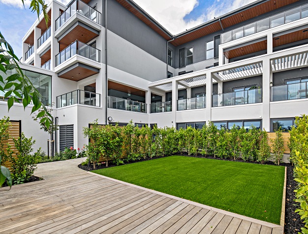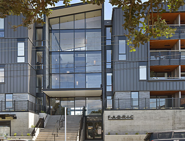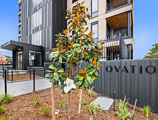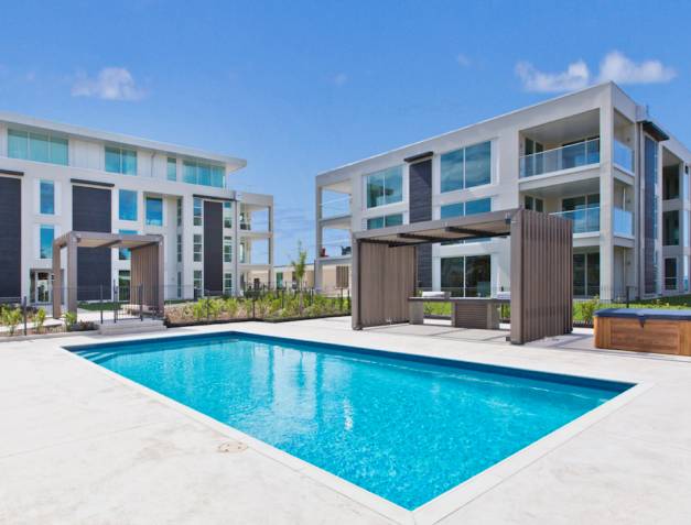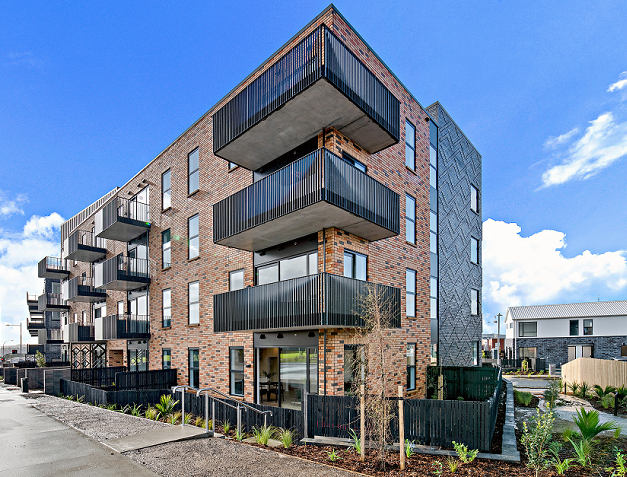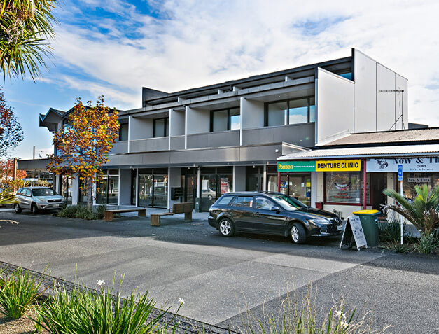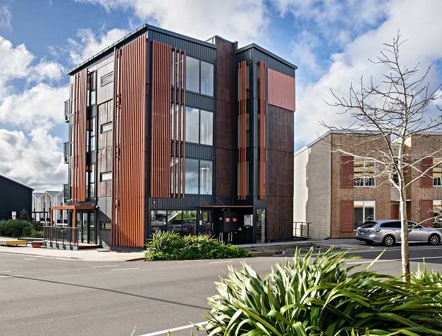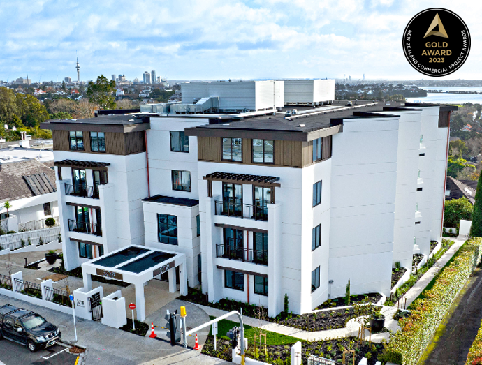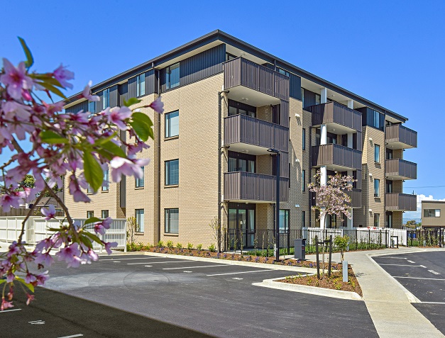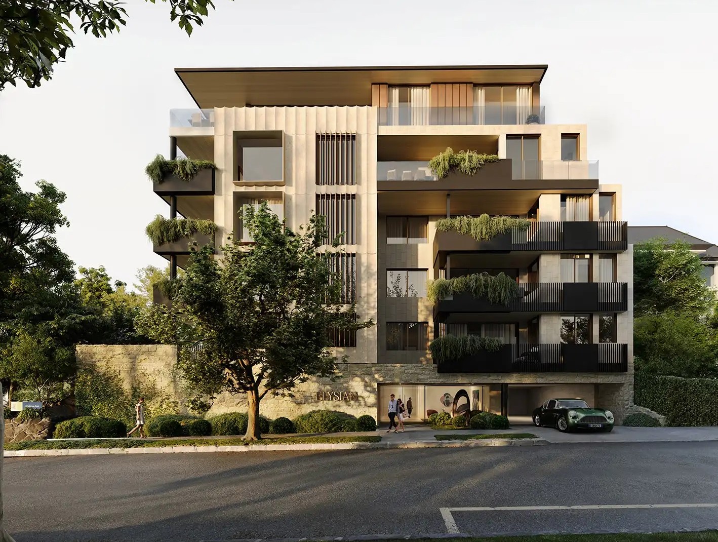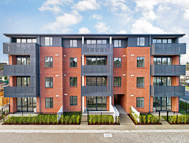 Three buildings, all four stories high that are constructed over an elevated podium. Basement with lift cores to service each building.