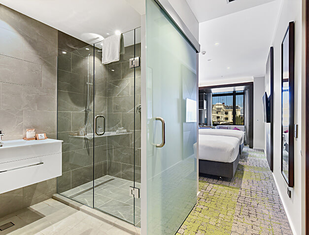 The building consists of a lower basement level, ground floor and 7 levels above. Restaurant and retail outlets will be located on the lower basement level, a gym at ground level and hotel studios on the upper levels.