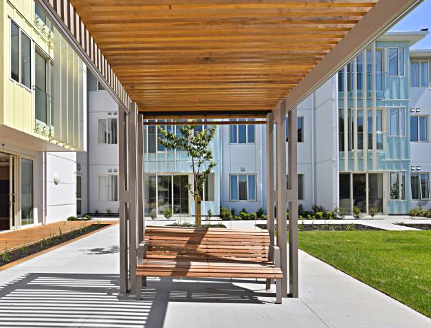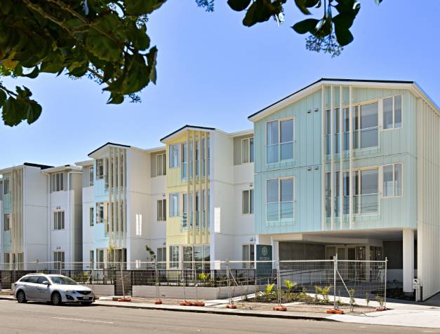 Aged care facility located in Hobsonville Point, comprising four blocks, standing up to four-stories high.